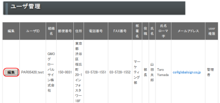 ※管理者以外のユーザ権限でログインした場合、管理者情報はこちらのメニューには表示されません。