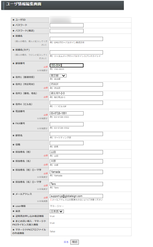 GSパネルの契約担当者様に変更があった場合や、転居などで情報の修正が必要な場合は速やかにユーザ管理にて情報の更新を行ってください。