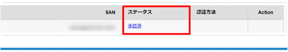 - ステータスが「未承認」となっており、「認証方法」が選択できる状態の場合は、自動的に再利用されていないため、ドメイン認証が必要です。