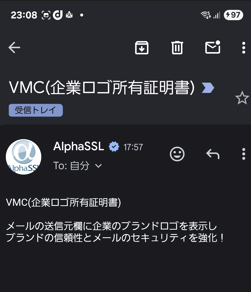 VMCは、Verified Mark Certificateの略で、メールの送信元を検証、ブランドのロゴをメールクライアントソフトの受信トレイ上で表示できるようにするためのデジタル証明書です。メールを受信したユーザーはメールが正当なものであることを簡単に確認できるため、なりすまし、フィッシングといったサイバー攻撃から、受信メールの信頼性を瞬時に判断できるためのセキュリティとして注目を集めています。